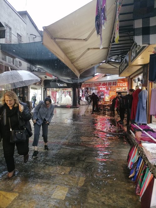 İzmir’i etkisi altına alan sağanak yağış, öğlen saatlerinde şiddetini artırdı. Her sağanak yağışta su baskınlarına maruz kalan Kemeraltı Çarşısı yine yağmura teslim oldu.
