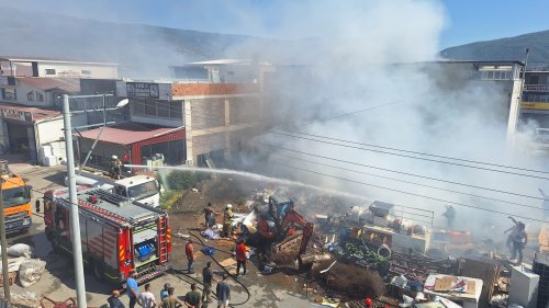 İzmir Selçuk'ta, Sanayi Sitesi'ndeki bir hurda deposunda çıkan yangın kontrol altına alındı.