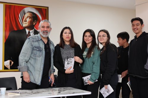 Yazar Eylül Ayça Karakuş ile Kum Sanatı Sanatçısı ve yazar Tarkan Köylü, İbrahim Bedreddin Elmalı Fen Lisesi öğrencileri ile Okuryazar Buluşması etkinliğinde bir araya geldi.