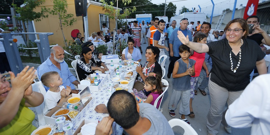 Konak Belediyesi, Ramazan ayı dolayısıyla Ege Mahallesi’nde bin kişilik iftar sofrası kurdu. Roman vatandaşların çoğunlukta yaşadığı mahallede düzenlenen iftara Konak Belediye Başkanı Sema Pekdaş, belediye meclis üyeleri ve muhtarlar da katıldı. İftar öncesi masaları gezen Başkan Pekdaş’a mahalle sakinleri yoğun ilgi gösterdi. Vatandaşların adeta bağırlarına bastığı Pekdaş, gösterilen sıcak ilgiye karşılık olarak onlarla bol bol sohbet etti. Ege Mahallesi Muhtarı Kemal Ersun, dostluk, dayanışma ve paylaşımın vurgulandığı iftar yemeğinin düzenlenmesini sağlayan Başkan Pekdaş’ın kendilerine her zaman destek olduğunu dile getirerek, "Bu yıl da çok güzel bir organizasyona imza attık. Sevgili Başkanımız Sema Pekdaş’a ve emeği geçen herkese teşekkür ediyorum. Aynı sofra etrafında buluştuk ve Ramazan’ın kardeşlik ve dayanışma ruhunu bir kez daha yaşadık" dedi. Okunan ezanla birlikte aynı sofrada buluşan mahalle sakinleri hep birlikte oruç açtı.