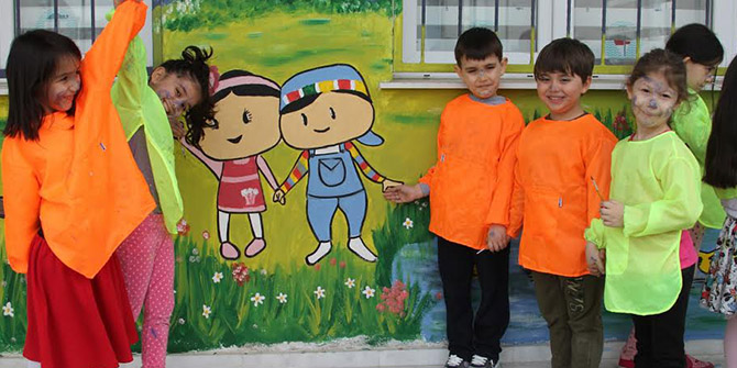 İKÇÜ'lü öğrenciler okul duvarlarını renklendirdi