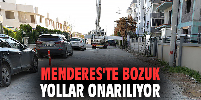 Menderes'te bozuk yollar onarılıyor