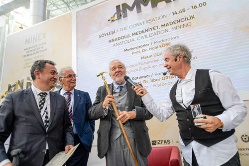 Fuar İzmir'de gerçekleştirilen IMMAT Kongresi'nin ilk gününe, “Anadolu, Medeniyet ve Madencilik” isimli söyleşinin konuğu olan ünlü tarihçi ve yazar Prof. Dr. İlber Ortaylı damga vurdu. Türkiye’nin ‘İlber Hoca’sı, altın madeninin medeniyetlerin doğuşundan başlayıp günümüze kadar uzanan yolculuğunu kongre ve fuar katılımcıları için anlattı.