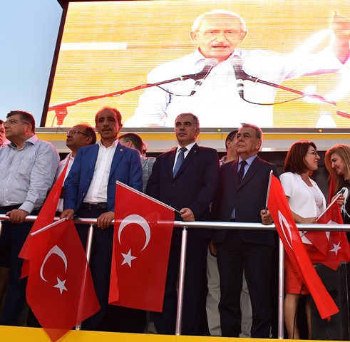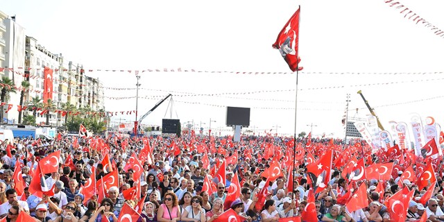 Cumhuriyet Halk Partisi'nin, İzmir Gündoğdu Meydanı'nda düzenlediği "Cumhuriyet ve Demokrasi' mitingine on binlerce İzmirli katıldı.