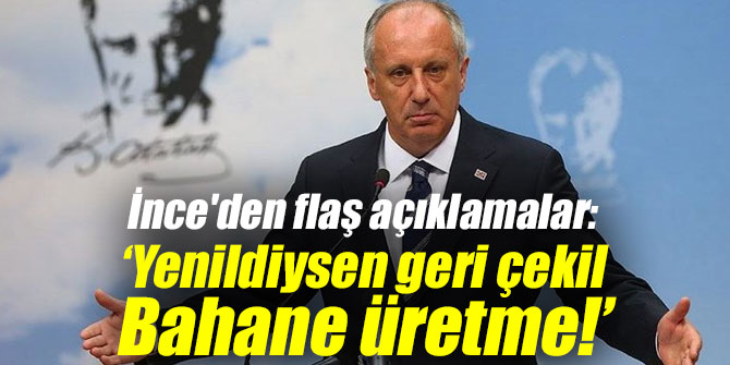 Muharrem İnce yaptığı son açıklamada,"Yenildiğini kabul edemeyen yenemez, yenildiysen geri çekileceksin, hazırlıklarını yapacaksın, bahane üretmeyeceksin." dedi.