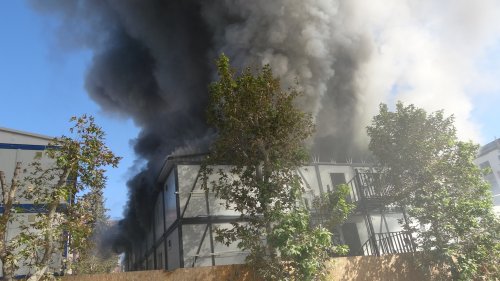 Kahramanmaraş’ta deprem konutlarında çalışan işçilerin kaldığı konteynerlerde yangın çıktı. Yangın paniğe neden olurken, konteyner içerisinde kimsenin bulunmaması facianın önüne geçti.