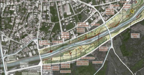 484 ağaç dikilecek projede, çeşitli bitkilerden oluşturulan yeşil çitle çevrelenen dere kenarında ahşap güneşlenme terası, oturma birimleri, yürüyüş yolları ile oyun alanları oluşturulacak.