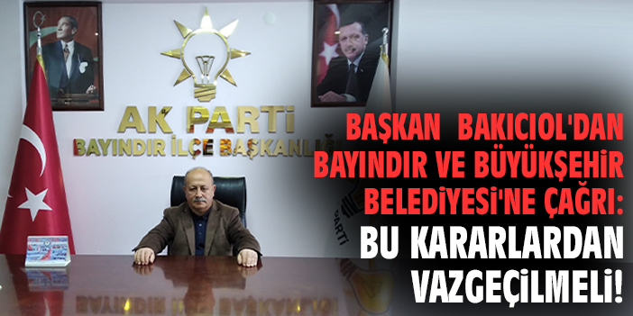 Başkan Bakıcıol'dan Bayındır ve Büyükşehir Belediyesi'ne çağrı: Bu kararlardan vazgeçilmeli!