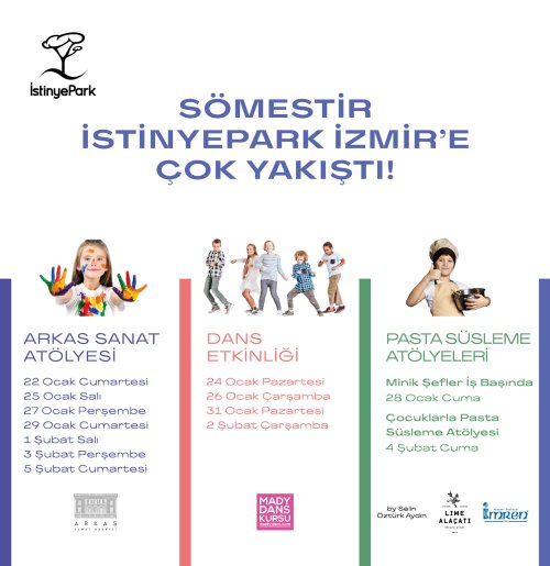 Ayrıca İstinyePark İzmir’de tatil boyunca birçok farklı yaş grubuna özel hazırlanan sürpriz etkinlikler de sizleri bekliyor. Bu sömestir tatilinde siz de İstinyePark İzmir’de yerinizi alın, eğlenceyi kaçırmayın!