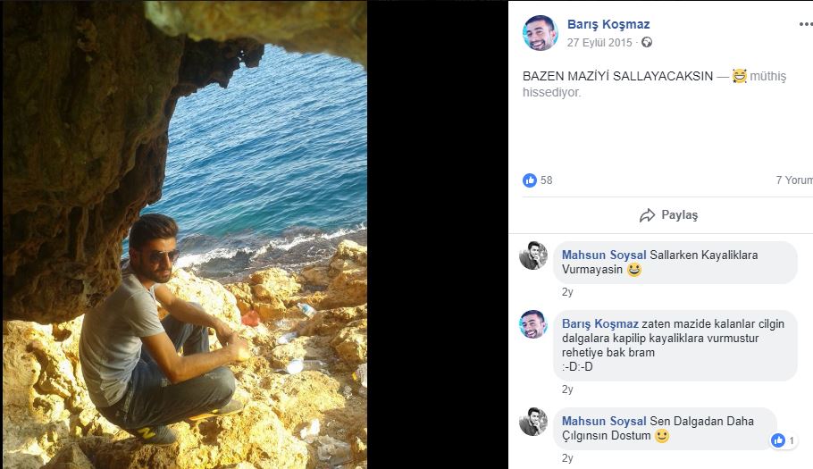 Antalya’da iznini kullanmayıp askerden erken terhis olan 25 yaşındaki Barış Koşmaz, falezlerden düşerek yaşamını kaybetti. Gencin, 3 yıl önce falezlerde çekindiği fotoğrafla ilgili sosyal medya üzerinden arkadaşlarıyla girdiği diyaloglar ise dikkat çekti.