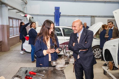 Büyükşehir Belediye Başkanı Tunç Soyer, İzmir Büyükşehir Belediyesi, UNDP, Gaziemir Şehit Serhat Sığnak Mesleki ve Teknik Anadolu Lisesi, Sabancı Vakfı ve İnci Vakfı işbirliğiyle otomotiv alanında dört branşta verilen kursların kadın mezunlarıyla buluştu.