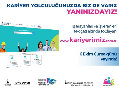Kentte refahı büyütme ve adil paylaştırma hedefi doğrultusunda işgücü potansiyelini attırmak, kalifiye eleman yetiştirmek üzere hizmet veren İzmir Büyükşehir Belediyesi Meslek Fabrikası bu kez işveren ile iş gücünü “www.kariyerimiz.com.tr” sitesinde bir araya getirecek. 6 Ekim cuma günü saat 11.00’da Tarihi Havagazı Fabrikası’nda İzmir Büyükşehir Belediye Başkanı Tunç Soyer’in de katılımıyla sitenin tanıtımı yapılacak. İzmir Büyükşehir Belediyesi’nin istihdamı geliştirme ve destekleme çalışmaları kapsamında “www.kariyerimiz.com.tr”un oluştuğunu ifade eden İzmir Büyükşehir Belediye Başkanı Tunç Soyer, “Seçim vaatlerimde de dediğim gibi ‘Devlet babaysa, biz ana olmalıyız.’ Eğitim ve istihdamdan mağdur olanlara karşı biz sorumluluk duyuyoruz. Küçük gibi görünebilir ama attığımız adım büyük ve anlamlı” dedi.