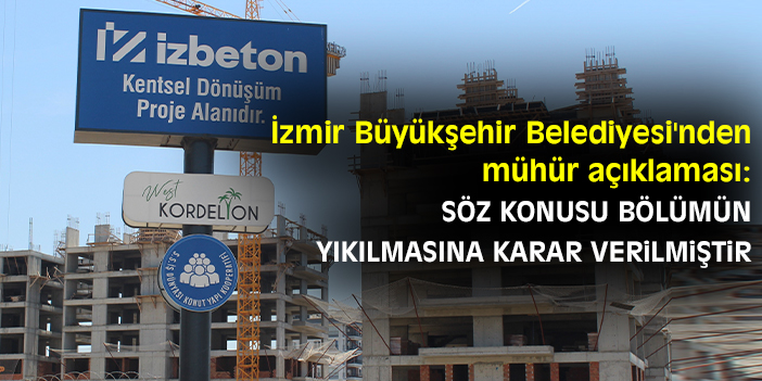 İzmir Büyükşehir Belediyesi'nden mühür açıklaması: Söz konusu bölümün yıkılmasına karar verilmiştir