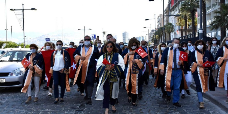 İzmir Demokrasi Üniversitesi Rektörü Prof. Dr. Bedriye TUNÇSİPER önderliğinde üniversite öğretim üyelerinin cübbeleri ve idari personelinin ellerinde Türk Bayraklarıyla katıldıkları “Demokrasi Yürüyüşü”nün Türk akademisinin demokrasiye olan inancı ve bağlılığının ifadesi olduğu vurgulandı. İzmir’in en merkezi konumu olan Gündoğdu Meydanı'ndan Cumhuriyet Meydanı'na kadar yapılan yürüyüşün ardından Prof. Dr. Bedriye TUNÇSİPER basın mensuplarına açıklama yaparak, İzmir Demokrasi Üniversitesi ailesi olarak geleneksel hale getirilen bu yürüyüşün üçüncüsünü gerçekleştirmenin mutluluğunu ve gururunu yaşadıklarını, bu yürüyüşle 15 Temmuz 2016’da Türk halkının demokrasiye olan bağlılığıyla engel olduğu darbe girişimine dair milli hafızayı canlı tutmayı ve aziz şehitlerimizin ve gazilerimizin hatıralarına sahip çıkarak bu bilinci gelecek nesillere aktarmayı amaçladıklarını ifade etti.