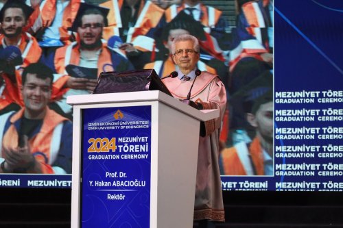 İzmir Ekonomi Üniversitesi (İEÜ) 2023-2024 Akademik Yılı Mezuniyet Törenleri, kampüs içindeki amfitiyatroda gerçekleştirildi. Bu yılki mezuniyet törenleri, her fakülte ve yüksekokul için ayrı ayrı düzenlenerek 5 güne bölündü. Bu sayede, sahnede daha uzun süre kalma fırsatı bulan gençler, davetlilerden büyük alkış aldı. Törenlere; İEÜ Rektörü Prof. Dr. Yusuf Hakan Abacıoğlu, İzmir Ticaret Odası Meclis Başkanı Selami Özpoyraz, Meclis Başkan Yardımcıları Mehmet Tahir Özdemir ve Nevzat Artkıy, İEÜ Önceki Dönem Rektörü Prof. Dr. Murat Aşkar, Rektör Yardımcıları Prof. Dr. Levent Eren, Prof. Dr. Aslı Ceylan Öner ve Prof. Dr. Gözde Yazgı Tütüncü, İzmir Ticaret Odası Eğitim ve Sağlık Vakfı ile üniversitenin mütevelli heyet üyeleri, akademisyenler ve aileler katıldı. İEÜ Mütevelli Heyet Başkanı Mahmut Özgener, mezunlara özel bir video ile seslenerek fikir ve tecrübelerini aktardı, başarı dileklerini iletti.