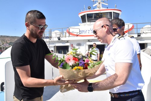Prof. Dr. Aziz Sancar gemisi yolcularını ve kaptanı Ali Gökay Gürhan’ı, Büyükdeniz Limanında karşılayan Foça Belediye Başkanı Fatih Gürbüz; ‘‘İzmir Büyükşehir Belediyesine teşekkür eder, tüm misafirlerimize iyi tatiller dileriz.’’dedi.