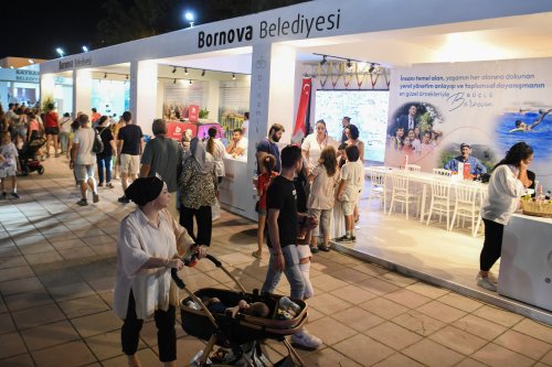 Bornova Belediyesi’nin standı, ilçenin tarihi ve kültürel mirasını tanıtan eşsiz bir platforma dönüştü. Yeşilova Höyüğü’nden Belkahve’ye, Levanten Köşkleri’nden dünyaca ünlü halk ozanı Homeros’a kadar birçok değer, Kukla Şeker’in sıradışı anlatımıyla ziyaretçilere sunuldu. Ayrıca, halk oyunu gösterileri ve çocuklar için düzenlenen çikolata ve kukla yapım atölyeleri büyük beğeni topladı. 30 Ağustos Zafer Bayramı dolayısıyla ziyaretçilere Türk bayrağı dağıtıldı.