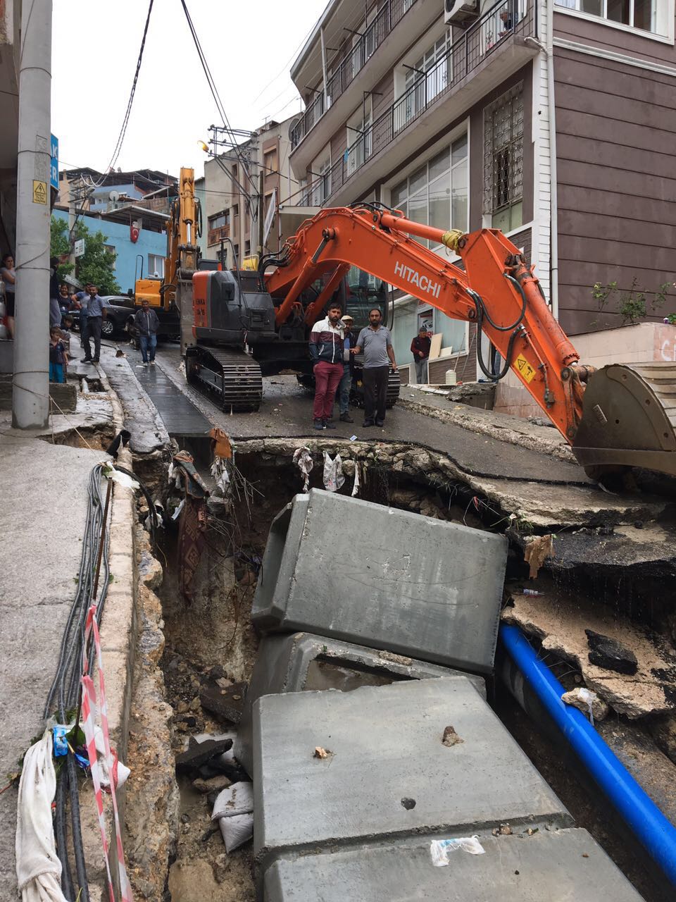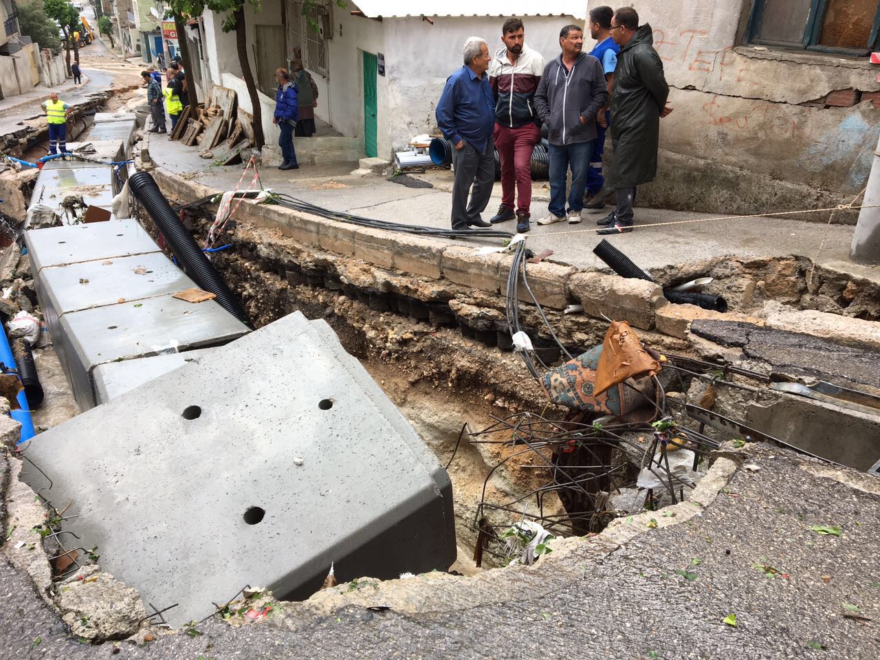 Büyükşehir Belediyesi'ne ait kanal çalışmasının sebep olduğu olayda çok sayıda ev, işyeri ve araç zarar görürken, olay yerinden gelen fotoğraflar bilançoyu gözler önüne seriyor. Gültepe'de bir evin duvarları yıkılırken evde ikamet eden yaşlı kadın son anda kurtarıldı.