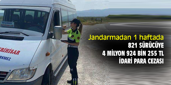 Jandarmadan 1 haftada 821 sürücüye 4 milyon 924 bin 255 TL idari para cezası