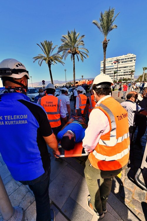 İzmir Büyükşehir Belediyesi İtfaiye Dairesi Başkanlığı, 27 Eylül- 3 Ekim tarihleri arasında kutlanan İtfaiye Haftası etkinlikleri kapsamında, Türk Telekom İl Müdürlüğü ile ortak yangın tatbikatı düzenledi. Tatbikat kapsamında Türk Telekom binasının dördüncü katındaki çay ocağında çıkan yangına; merkez gruptan iki arazöz, bir merdivenli araç, bir AKS 110 kurtarma aracının yanı sıra 2'si paramedik olmak üzere 14 itfaiye personeliyle müdahale edildi. Ekipler, panik halinde çatıya çıkan bir kişiyi, sedyeye alarak serbest iniş tekniğiyle kurtardı. Yine çay ocağında mahsur kalan bir yaralı ekipler tarafından başarılı bir operasyonla kurtarıldı. Daha sonra yangın, kısa sürede itfaiyeciler tarafından kontrol altına alındı.