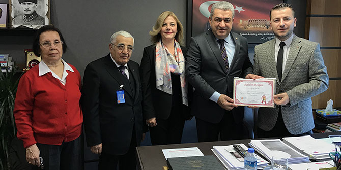 İzmir Kültür ve Dayanışma Derneği Yönetim Kurulu üyeleri TBMM’ye gerçekleştirdikleri ziyarette İzmir Milletvekillerine Kasım ayında düzenlenen fuara sundukları destek için katılım belgelerini sundu.