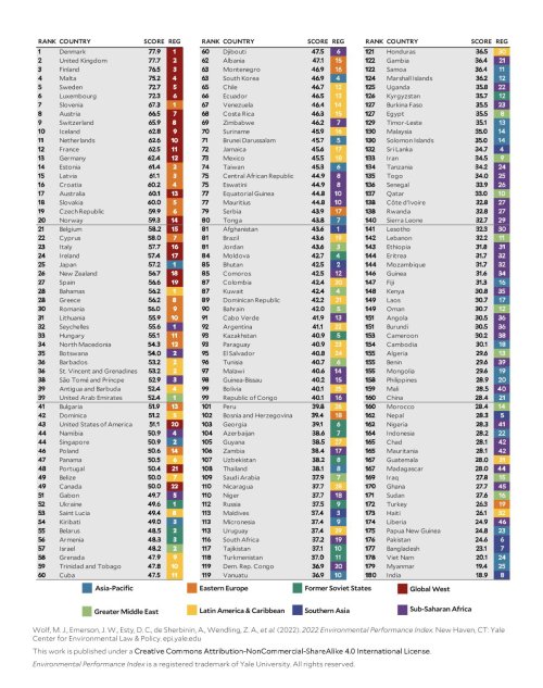Çevre Güven Endeksi'nin 2022 yılı verilenin ilk 10'unda ise sırasıyla şu ülkeler yer aldı: Danimarka, Birleşik Krallık, Finlandiya, Malta, İsveç, Lüksemburg, Slovenya, Avusturya, İsviçre ve Hollanda.