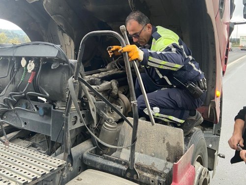 Kasadaki malzemeleri yola savrulan kamyon şoförünün kazayı bildirmesi üzerine kaza yerine polis ekipleri sevk edildi. İhbar üzerine bölgeye gelen İzmir Güryay Çelik Otoyol Büro Amirliğine bağlı motorize ekipler, kasasında yüklü gübre paketleri yola savrulan kamyon sürücüsüne yardım etti. Gübre paketlerini yoldan temizleyen polis ekiplerine, kamyon sürücüsü de teşekkür etti.