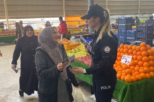 Karabağlar İlçe Emniyet Müdürlüğü ekipleri, pazar alışverişine gelen vatandaşları kadına karşı şiddetle mücadele ve dolandırıcılık konularında bilgilendirdi.
