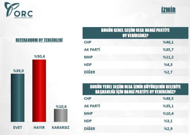 ORC tarafından yapılan anket "İzmir'de referanduma "hayır" diyecek sayısı bu kadar az olabilir mi?" sorusunu sordurturken İzmir'de yüzde 50,4 gibi az bir fark çıkması kafaları karıştırdı.