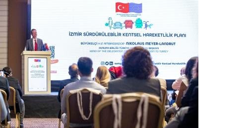 Diğer açılış konuşmasını yapan AB Türkiye Delegasyonu Başkanı Büyükelçi Nikolaus Meyer-Landrut ise şöyle konuştu: “İzmir’in Sürdürülebilir Kentsel Hareketlilik Planı’nın startını ‘Otomobilsiz Kent Günü’nde veriyoruz, bunun bir tesadüf olmadığını düşünüyorum. İzmir, Sürdürülebilir Kentsel Hareketlilik Planlamasına geçişte de öncü rolü rol oynuyor. Sürdürülebilir Kentsel Hareketlilik Planı, İzmir için insan odaklı, erişilebilir, emniyetli, sağlık odaklı dirençli bir ulaşım vizyonu oluşturacak. Geleneksel ulaşım planlamasından farkı odağında araçlar değil insanın ve çevreye saygının olması. Proje belediyenin imar, çevre gibi birçok biriminden ekipler ile yürütülecek, paydaşların ve vatandaşların vizyonun belirlenmesinde geniş söz hakkı olacak.”