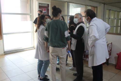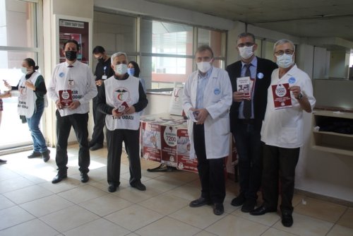 İzmir Tabip Odası Yönetim Kurulu adına Başkan Dr. Lütfi Çamlı, Genel Sekreter Dr. Nuri Seha Yüksel ve Yönetim Kurulu Üyesi Dr. Doğu Barış Kılıççıoğlu İKÇÜ Atatürk Eğitim Araştırma Hastanesi Başhekimi Prof. Dr. Ali Gürbüz bir görüşme gerçekleştirdi. İzmir Tabip Odası Yönetim Kurulu üyeleri ve oda aktivislerinin katılımı ile gerçekleşen ‘Emekliliğe yansıyacak yaşanabilir temel ödeme istiyoruz!’ etkinliğinde İKÇÜ Atatürk Eğitim Araştırma Hastanesi hekimlerine, ‘7200 Ek gösterge İstiyoruz’ Emekliliğe Yansıyan Yaşanabilir Temel Ödeme İstiyoruz!’ kokartları dağıtılarak konuya ilişkin hazırlanan broşürler paylaşıldı.