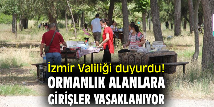 İzmir Valiliği tarafından yapılan açıklamada, orman yangınlarının önüne geçmek amacıyla, 1 Haziran-30 Ekim tarihleri arasında ormanlık alanlara giriş yasaklanacağı duyuruldu.