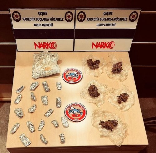 İzmir'in Çeşme ilçesinde takviye ekiplerle birlikte 150 kişilik polis ekibi, kent genelinde denetime çıktı. Araçlar ve eğlence mekanlarının denetlendiği, yüzlerce kişinin GBT sorgularının yapıldığı şok denetimlerde, uyuşturucu maddelerde ele geçirildi.