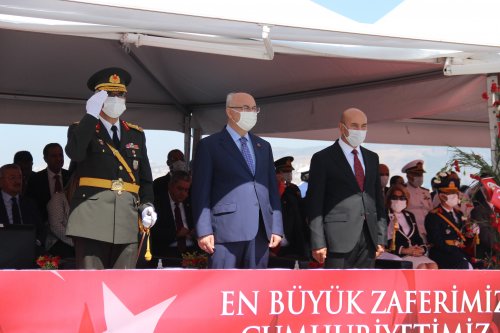 Kutlamalar İzmir Valiliğinde gerçekleşen kabul töreniyle devam ederken, ardından il protokolü ve askeri erkan Cumhuriyet Meydanı'daki yerini tekrardan aldı. Vatandaşlar ellerinde bayraklarla kutlamalara eşlik ederken ardından Cumhurbaşkanı Recep Tayyip Erdoğan’ın 30 Ağustos Zafer Bayramı kutlama mesajı okundu. Cumhurbaşkanı Erdoğan, 30 Ağustos mesajında, “Milletimizin ve dünyanın farklı yerlerinde yaşayan vatandaşlarımızın her birinin 30 Ağustos Zafer Bayramı’nı tebrik ediyorum. Bu gururlu günümüzde bizleri yalnız bırakmayan tüm dost ve kardeşlerimize şahsım, milletim adına teşekkürlerimi sunuyorum. Bu vesileyle İstiklal Harbimizin Başkomutanı, Cumhuriyetimizin Gazisi, Gazi Mustafa Kemal Atatürk’ü; Büyük Millet Meclisimizin kıymetli mensuplarını ve ordumuzun kahraman askerlerini rahmetle yad ediyorum” ifadelerine yer verdi. Hava Savunma Yüzbaşı Orçun Oral da günün anlam ve önemine dair konuşma gerçekleştirdi. Program resmi askeri geçit töreniyle sona ererken, kutlamalara Ege Ordusu Garnizon Komutanlığı bandosu da renk kattı.