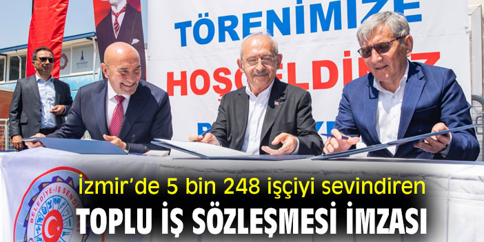 İzmir Büyükşehir Belediyesi ile Türkiye Belediyeler ve Genel Hizmetler Sendikası arasında 5 bin 248 personeli ilgilendiren toplu iş sözleşmesi CHP Genel Başkanı Kemal Kılıçdaroğlu'nun da katıldığı törenle imzalandı.