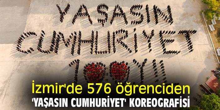 İzmir'in Aliağa ilçesinde 576 öğrenci ve 43 öğretmen, Cumhuriyet'in 100. yıl etkinlikleri çerçevesinde "Yaşasın Cumhuriyet, 100. Yıl" koreografisi oluşturdu.