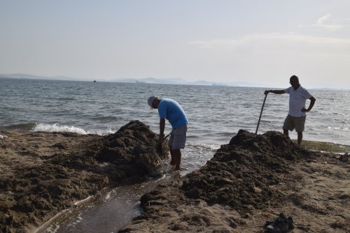 Daha sonra Dernek Başkanı Halil İbrahim Bircan, emekli öğretmen Muhammet Çekiç ve Hasan Çalova, ellerine aldıkları kürekler ile denizden nehre su geçişini sağlamak için kendi imkanlarıyla su kanalı açtı.