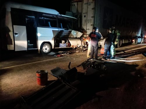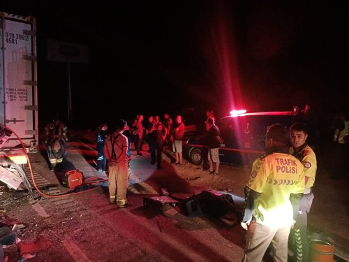 Bergama'da otoyolda seyir halinde olan servis minibüsünün aynı istikamette olan tıra arkadan çarpması sonucu meydana gelen kazada minibüsün sürücüsü ve yolcu konumunda bulunan 2 kişi hayatını kaybetti.
