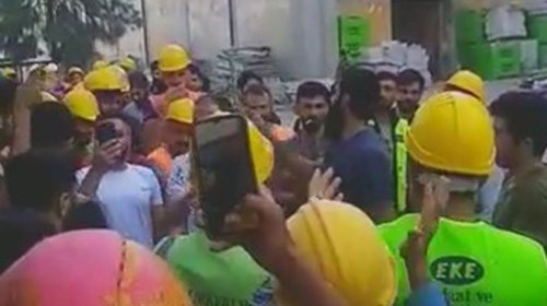 Şantiyede ambulans ve sağlık personeli bulunmadığını, iş güvenliği önlemlerinin yetersiz olduğunu savunan işçiler, iş bıraktı. "İşçiyiz, haklayız, kazanacağız" sloganı atan işçiler, şantiye yetkilileri ile görüşene dek iş bırakma eylemine devam edeceklerini açıkladı.
