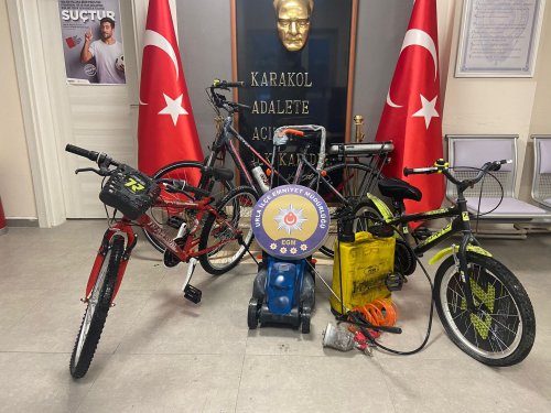 İzmir'in Urla ilçesinde İlçe Emniyet Müdürlüğüne bağlı Asayiş-Devriye Polis Merkez Amirliği ekipleri, iş yerinden ve kurumdan hırsızlık, tekne motor hırsızlığı ve evden hırsızlık olayları ile ilgili geniş çaplı çalışma başlattı. Çalışma kapsamında, hırsızlık olaylarını gerçekleştiren 4 şüpheli belirlendi. Belirlenen şüphelilerin evine yapılan operasyonda C.Ş., A.D., F.D., C.B.Ö. evde uyuşturucu maddesi kullanırken yakalandı. Operasyon kapsamında yapılan aramalarda 1 adet çim biçme makinesi, 1 adet elektrikli bisiklet, 1 adet dağ bisikleti, 1 adet çocuk bisikleti, 1 adet elle çalıştırılan ilaçlama makinesi ele geçirilerek sahiplerine teslim edildiği öğrenildi.