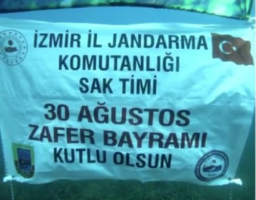 İzmir İl Jandarma Komutanlığı bünyesinde bulunan Sualtı Arama Kurtarma (SAK) Timi, Menderes ilçesine bağlı Özdere Çukuraltı sahilinde 30 Ağustos Zafer Bayramı kutlamaları kapsamında su altına dalış yaptı. Denizin 27 metre altına inen dalgıç jandarmalar, burada Türk bayrağı, Mustafa Kemal Atatürk posteri ve "30 Ağustos Zafer Bayramı kutlu olsun" yazılı poster açtı. Jandarma Sualtı Arama Kurtarma timi ekiplerince gerçekleştirilen faaliyet, su altı kamerasıyla görüntülendi.
