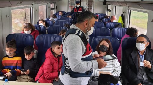 Denetimlerde görev alan jandarma personelleri, Covid-19 tedbirlerine riayet edilerek, trende yolcu olarak bulunan vatandaşlara bu konuda bilgilendirmede de bulundu.