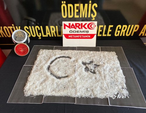 Ödemiş Narkotik Suçlarla Mücadele Grup Amirliği ekipleri, Bozdağ Mahallesi mevkiinde seyir halinde bir açık kasa kamyoneti şüphe üzerine durdurdu. Kamyonet içerisinde bulunan K.Ü., M.E. ve Ü.Y. adlı 3 kişinin tavırlarından şüphelenen polis ekipleri Cumhuriyet Savcılığından alınan izinle araçta arama gerçekleştirdi. Kamyoneti didik didik arayan polis ekipleri aracın akü bölmesine gizlenmiş ve beze sarılı halde 1 kilogram metamfetamin maddesi ele geçirdi.