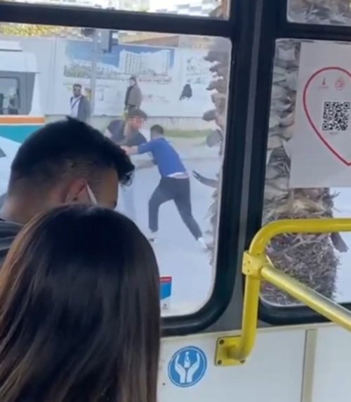 Yaralı M.G.’nin kendi imkanlarıyla hastaneye gittiği öğrenilirken, K.K. ise gözaltına alındı. Kavga anları ise otobüste bulunan bir vatandaş tarafından cep telefonuyla kaydedildi.