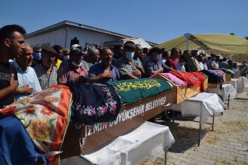 Kazada hayatını kaybedenlerden aynı köyde yaşayan Gönül Özcan (60), Ümmühan Kandemir (50), Remzi Kandemir (7), Sude Onuş (11), Elif Karadağ (57) ve Neriman Onuş (51) son yolculuklarına yan yana uğurlandı. Kırsal Taştepe Mahallesi'nde bulunan cem evinde düzenlenen törene AK Parti İzmir Milletvekili Hamza Dağ, CHP İzmir Milletvekili Mahir Polat, MHP İzmir Milletvekili Tamer Osmanağaoğlu, İzmir Büyükşehir Belediye Başkan Vekili Mustafa Özuslu, AK Parti İzmir İl Başkanı Kerem Ali Sürekli, Kınık Kaymakamı Erol Türkmen, Bergama Belediye Başkanı Hakan Koştu, Kınık Belediye Başkanı Sadık Doğruer, Kınık İlçe Emniyet Müdürü Bayram Öğüt ile kazada hayatını kaybedenlerin yakınları katıldı.