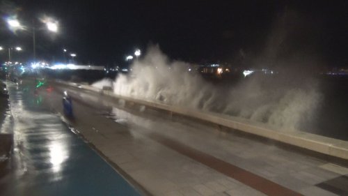 Saatteki hızı 90 kilometreye kadar çıkan rüzgar nedeniyle gece saatlerinde İzmir'in Konak ilçesi Mustafa Kemal Sahil Bulvarı’nda denizde taşkınlar meydana geldi.