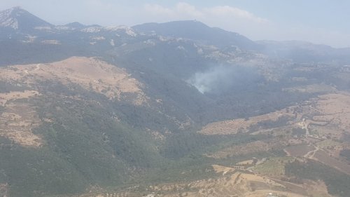 Ormanlık alanda çıkan yangın sebebiyle alevlere havadan ve karadan müdahale ediliyor. Yangını kontrol altına alma çalışmaları sürüyor.