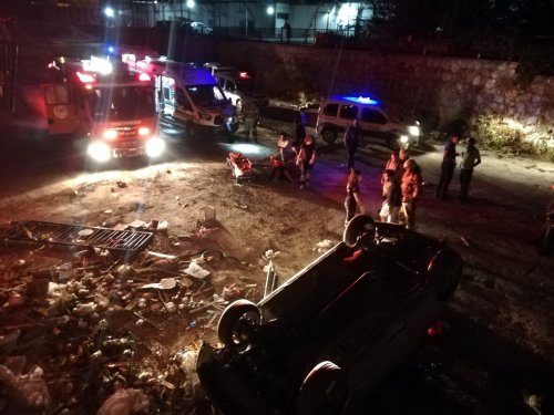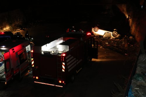 Otomobil demir korkulukları yıkarak dereye uçtu. Kazada 1’i ağır, 4 kişi yaralandı.