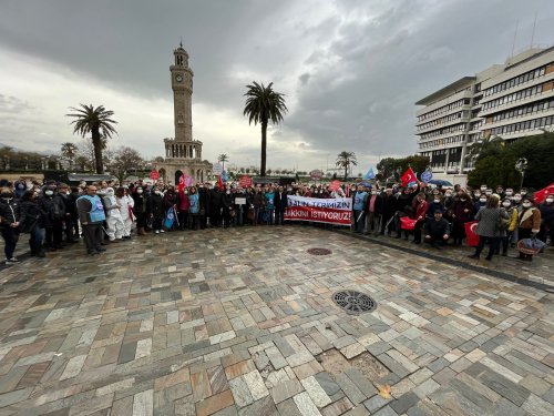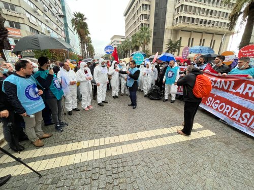 İzmir’de sağlıkçılar iş bırakma eylemi yaptı.