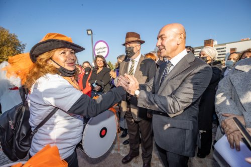İzmir Büyükşehir Belediye Başkanı Tunç Soyer’in “kadın dostu kent” vizyonu doğrultusunda 25 Kasım Uluslararası Kadına Karşı Şiddetle Mücadele Günü kapsamında “Turuncu Bahçe” ve “Kadın Anıtı”nın açılışı yapıldı